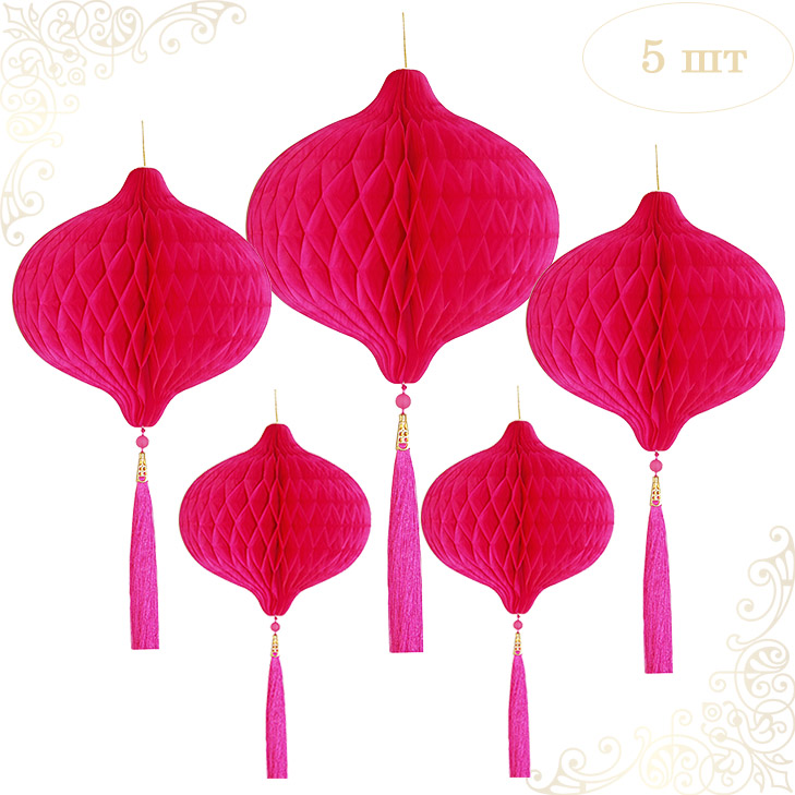 Бумажное украшение Шары-соты с кисточкой НАБОР 5 шт, малиновый