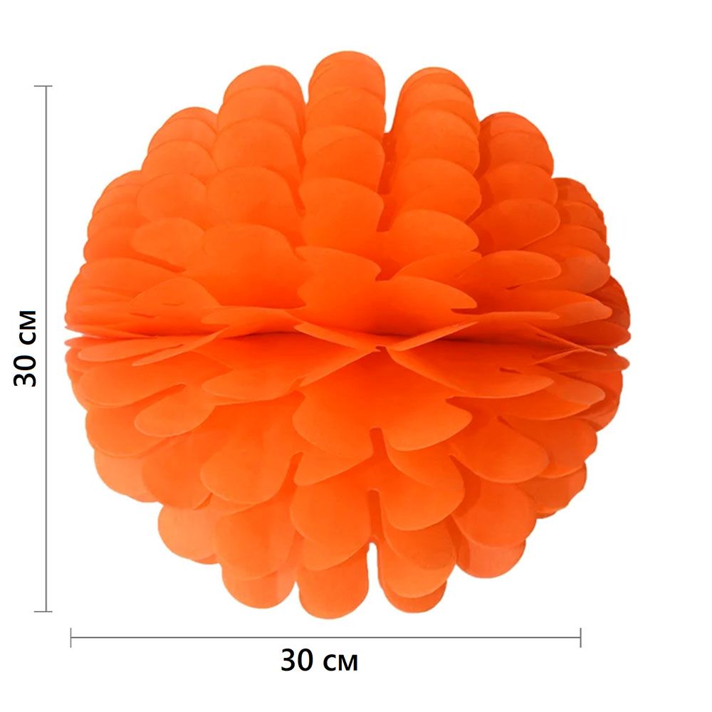 Бумажное украшение Цветочный шар-соты 30 см, оранжевый