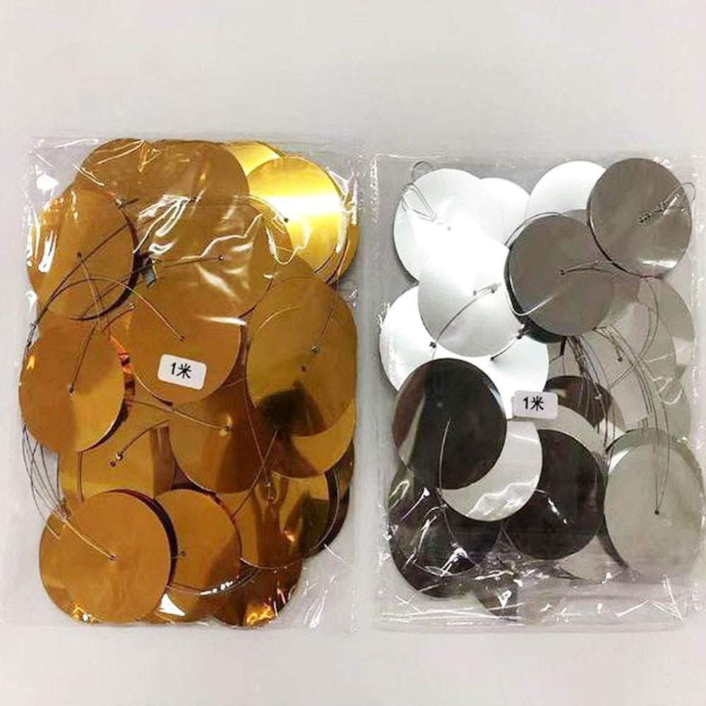 Декоративная гирлянда "Кружочки" на проволоке, представляет собой набор круглых пайеток, расположенных на проволоке.