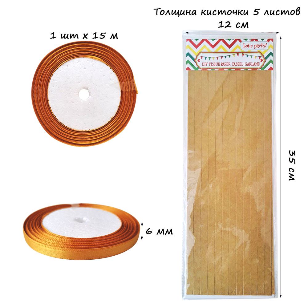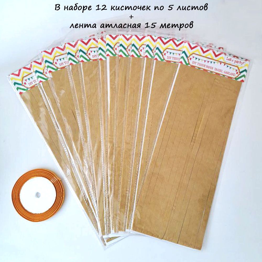 Гирлянда тассел 12 кисточек по 5 листов, латте