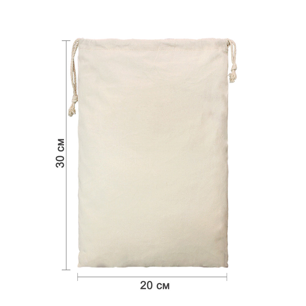 Мешочек из хлопка 20×30 см — универсальная упаковка для подарков, хранения и творчества. Натуральный хлопковый материал приятен на ощупь и подходит для украшений, сувениров, косметики, сладостей и других мелочей. Лаконичный дизайн делает мешочек удобным решением как для подарочной упаковки, так и для повседневного использования.