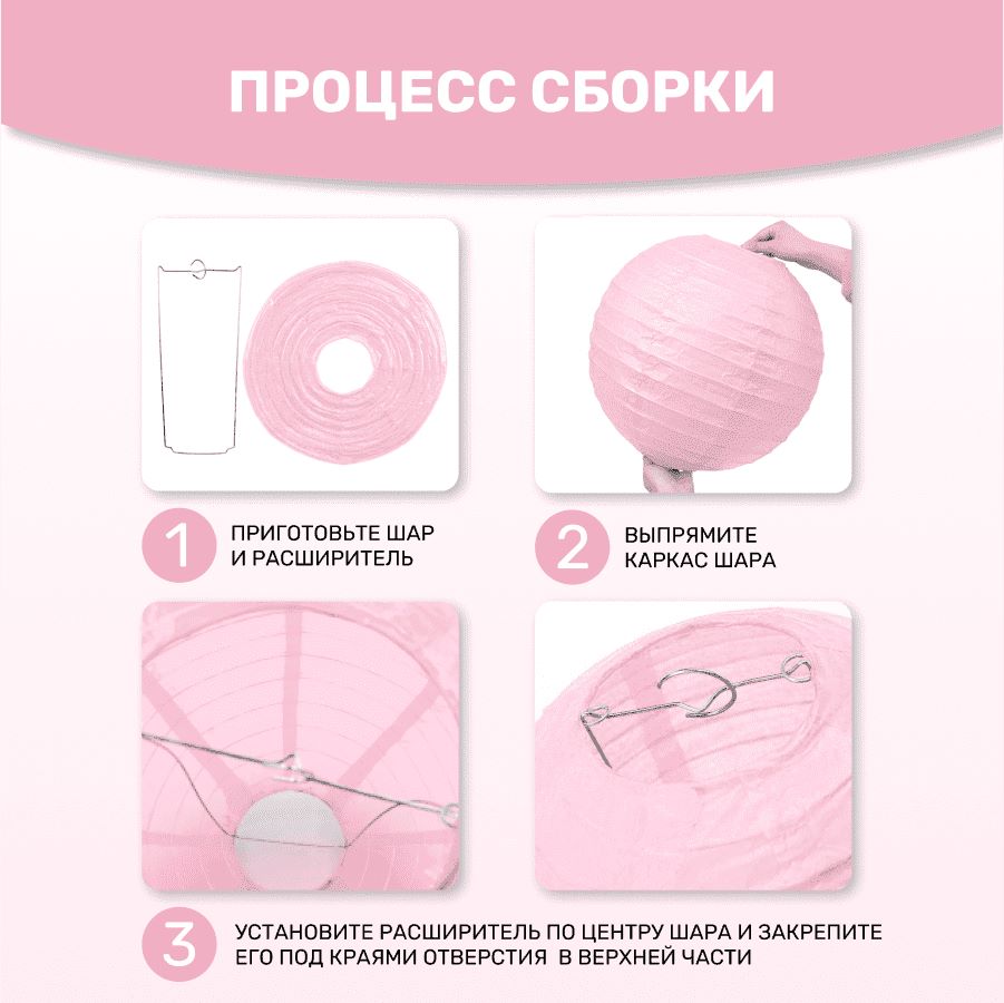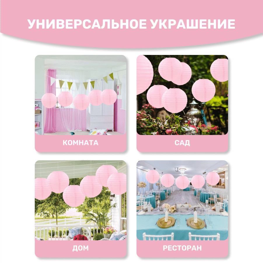 В комплект входит 8 бумажных фонариков и лента атласная.