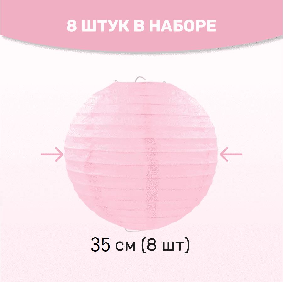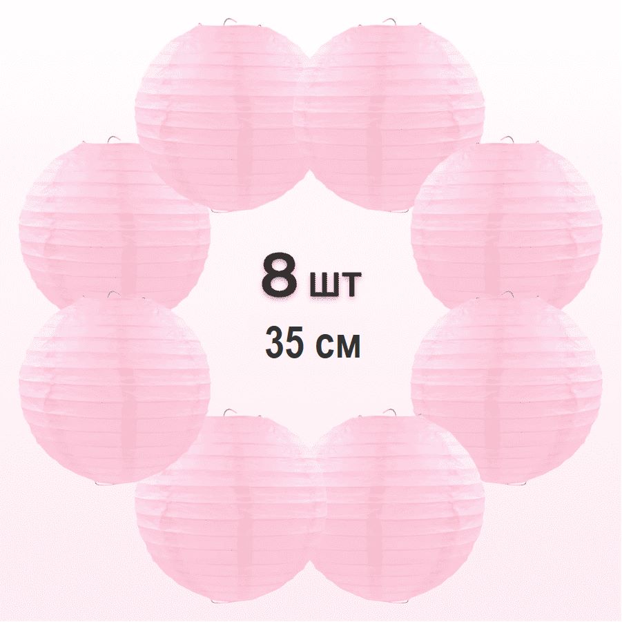 Комплект подвесные фонарики 35 см х 8 шт, розовый