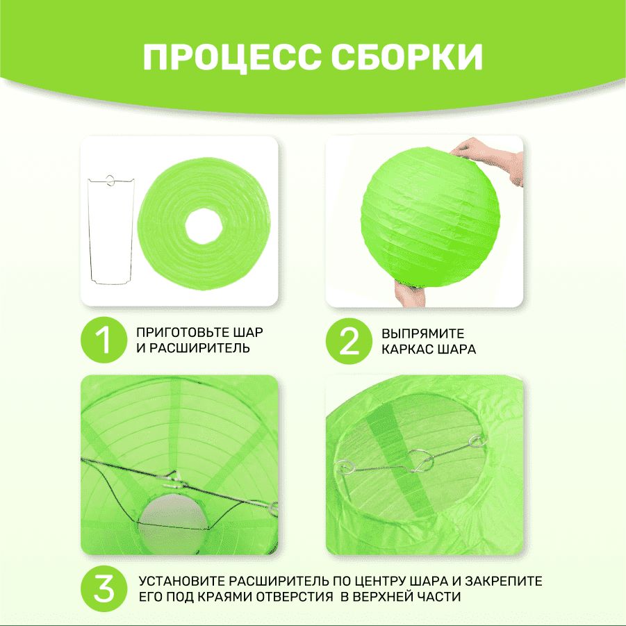 В комплект входит 8 бумажных фонариков и лента атласная.