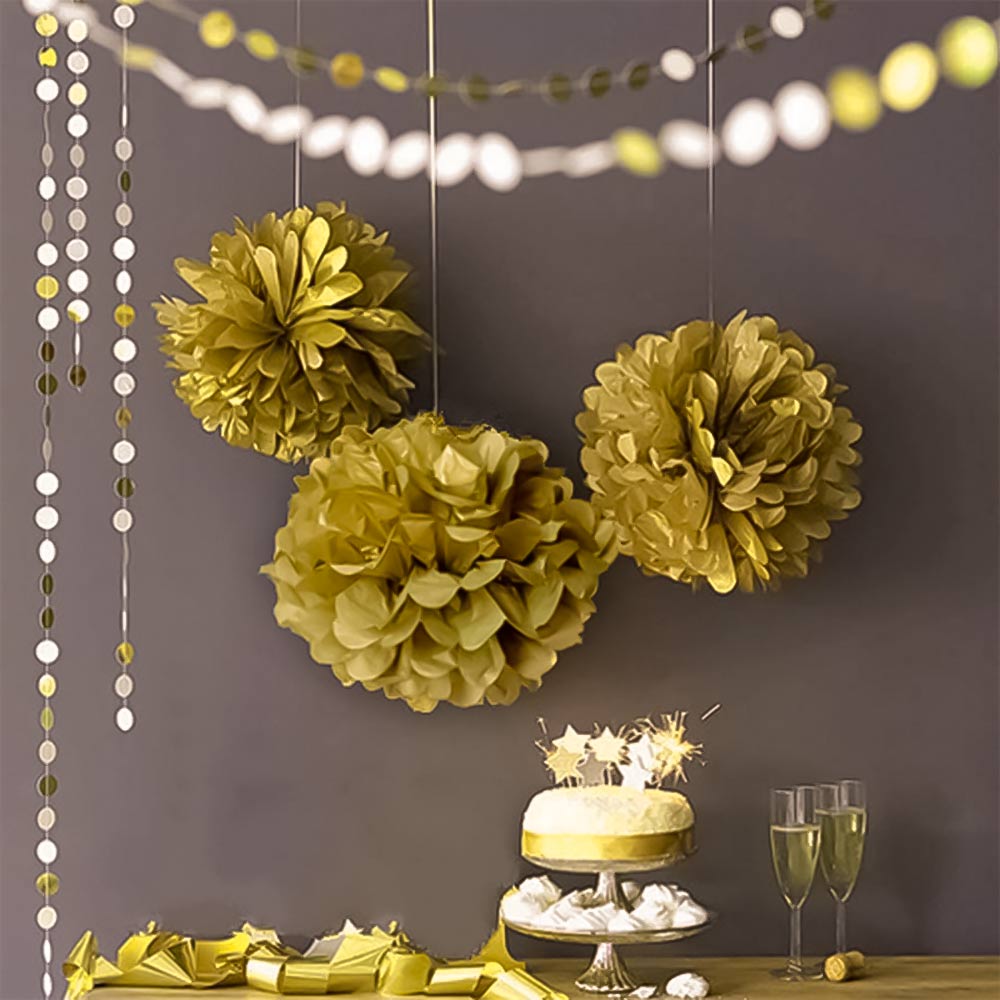 Золотой бумажный помпон диаметром 45 см — стильное и лёгкое украшение для праздников, фотозон, витрин и интерьера. Отлично подойдёт для дней рождений, свадеб, вечеринок и тематических мероприятий.