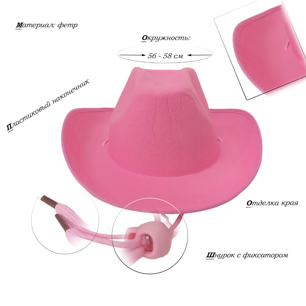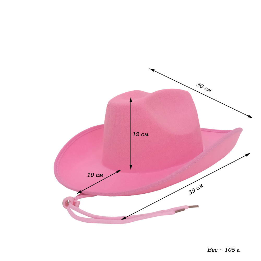Шляпа ковбойская, розовый - 1 шт.
