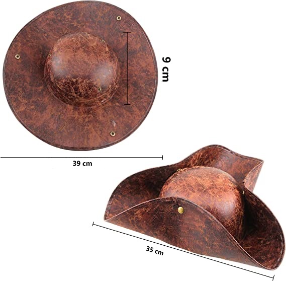 Шляпа Пирата треуголка на кнопке, коричневый