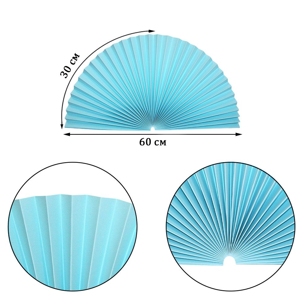 Веер-гармошка 180г/м 60 см, голубой